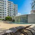 En el Apartamento Blue Gold Escape - Ocean View, Airco, Heated Pool se ofrece una cocina bien equipada con un lavavajillas y un horno. Los huéspedes también pueden darse un chapuzón en las piscinas exteriores.